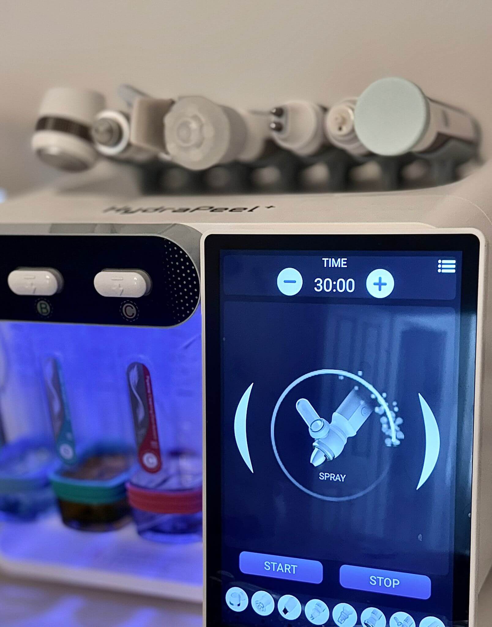 Hydra Peel ist eine sanfte, aber effektive Behandlung, die die Haut gründlich reinigt, klärt und mit Feuchtigkeit versorgt. Durch ein spezielles Gerät werden abgestorbene Hautzellen entfernt, Poren von Unreinheiten befreit und hochwirksame Seren tief in die Haut eingeschleust.